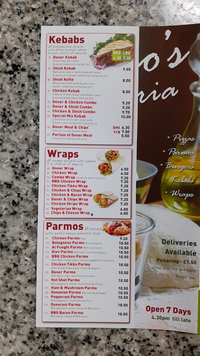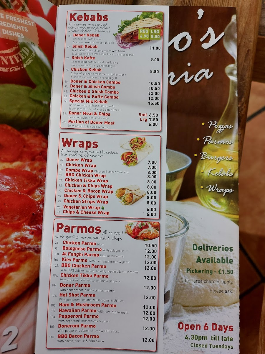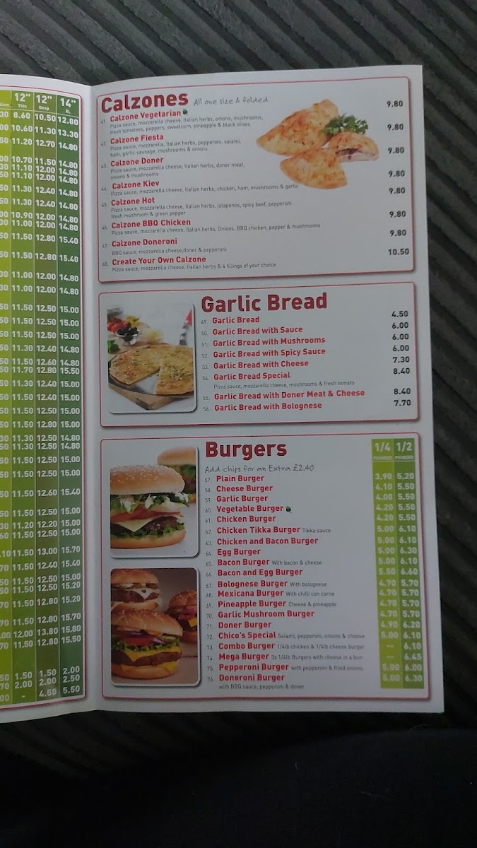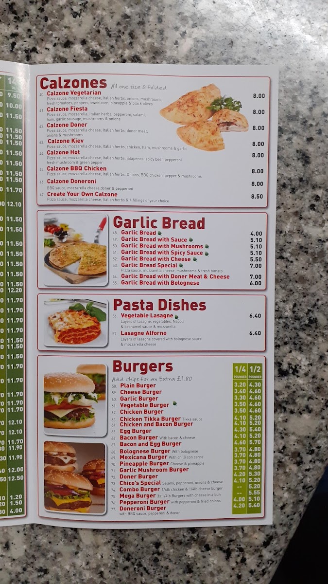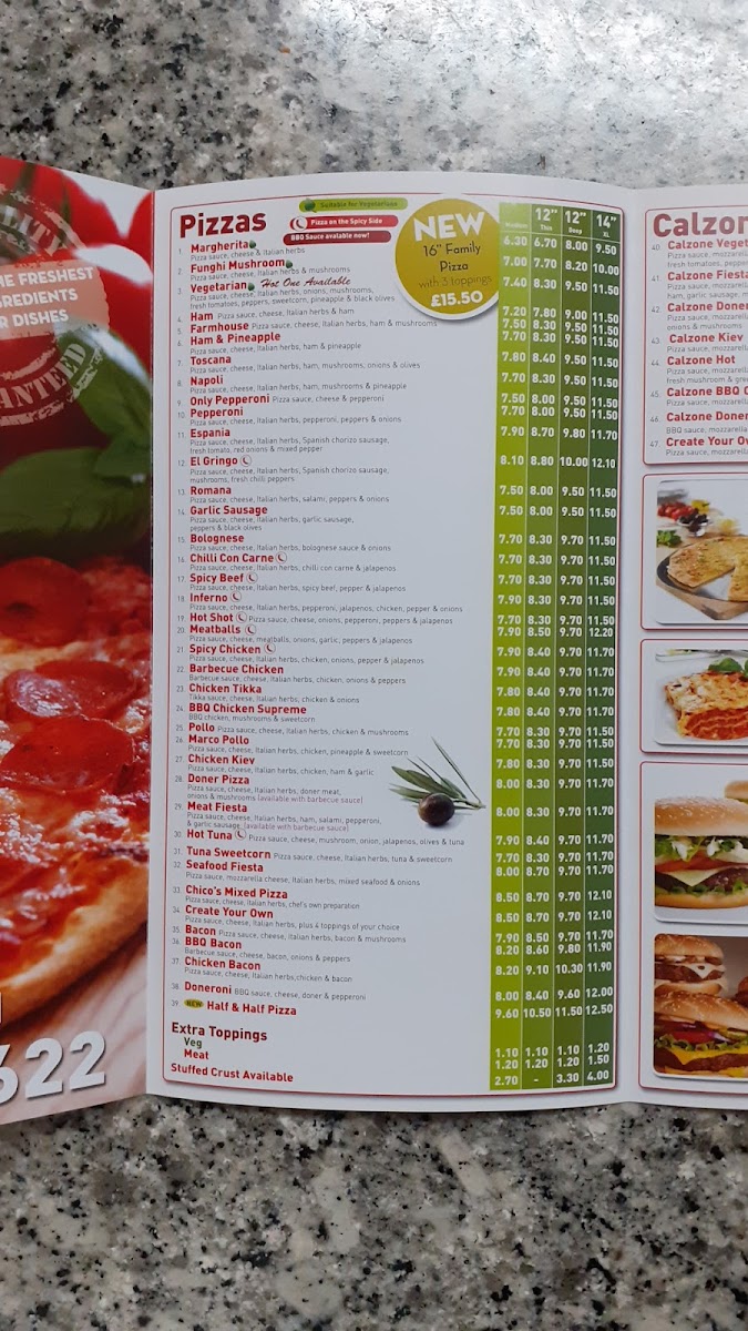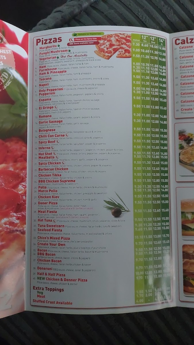 Chicos Pizzeria Menu