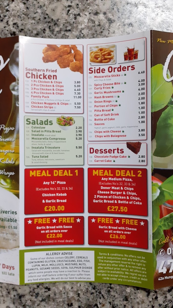 Chicos Pizzeria offers a straightforward menu filled with classic takeaway and fast food options that suit casual dining and quick, satisfying bites. You’ll find a variety of pizzas, including the popular Half and Half 14" with combinations like Hawaiian and Mushroom, alongside comforting sides such as chips with spice salt. This is a menu designed for moments when you want something familiar, easy to share, and fulfilling.